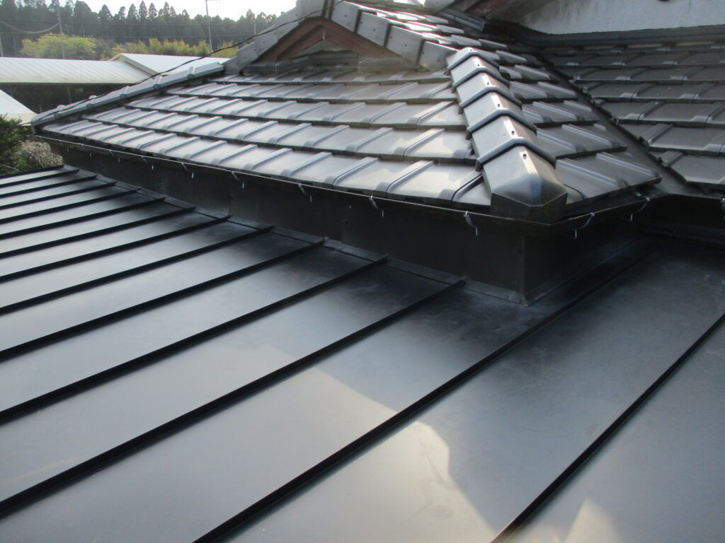 立平葺き板金 葺き替え工事 ヨドHyper GLカラー 萌 黒